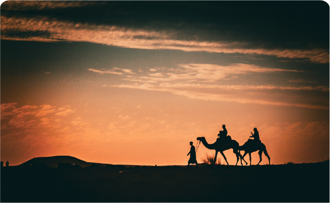 サハラ砂漠の入り口。砂丘のサイズ感が“想像の3倍”で、ラクダが普通に似合う世界。朝日と星空の破壊力が強すぎて、旅の思い出ランキングを勝手に乗っ取ってきます。