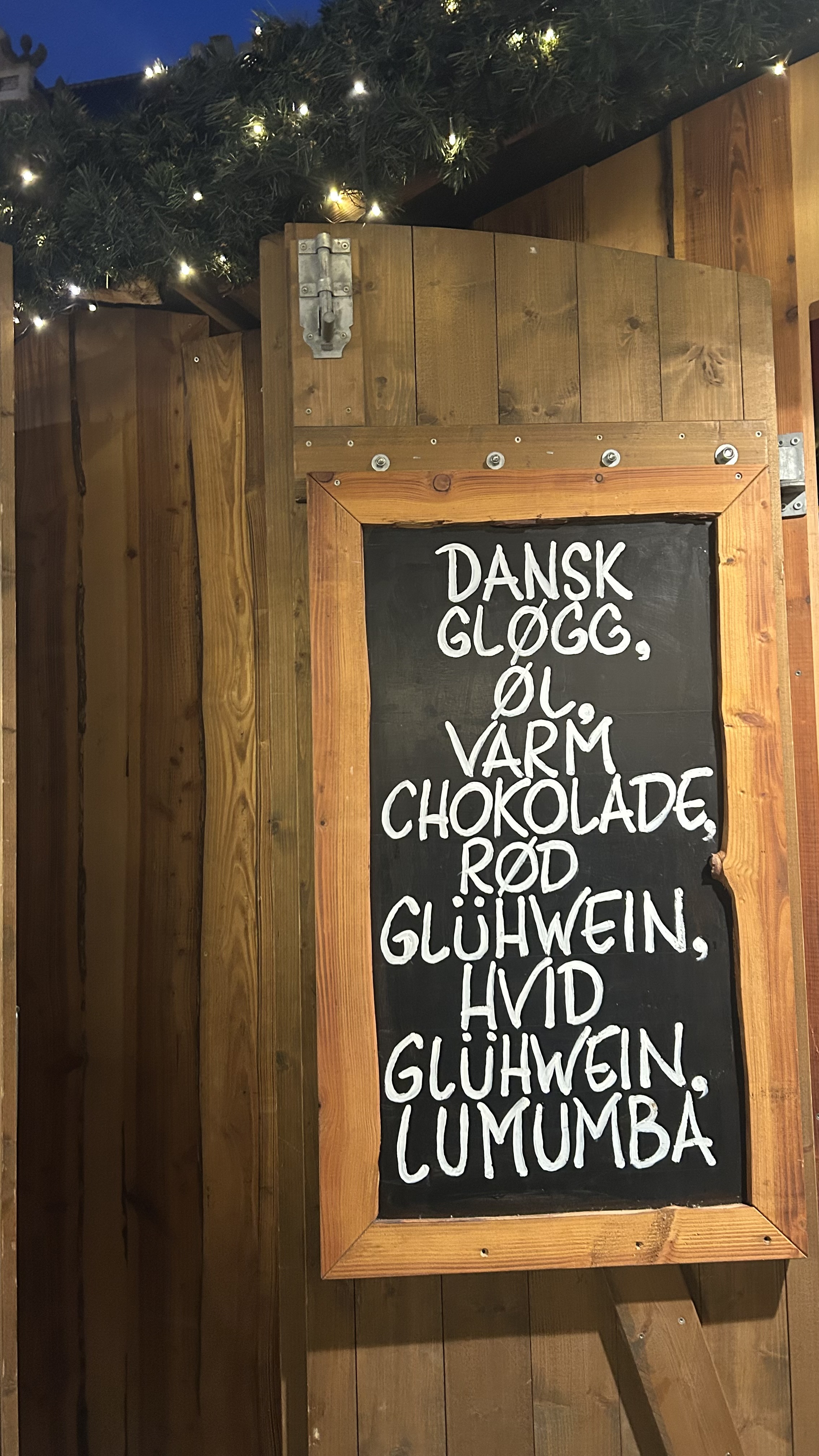 デンマークのホットワイン「グロッグ (Gløgg)」やホットドッグ、クリスマスオーナメントなどが売られていました。