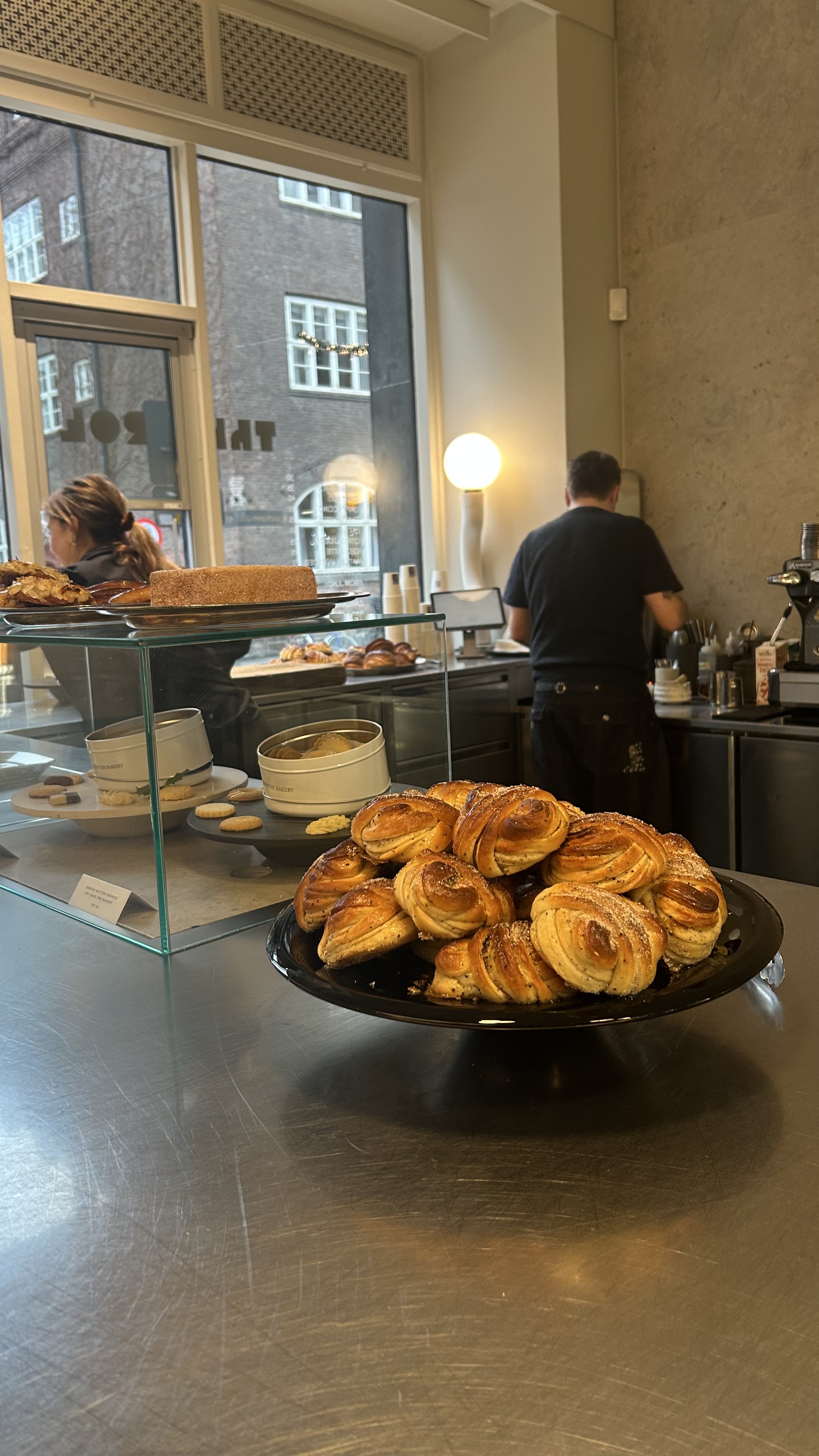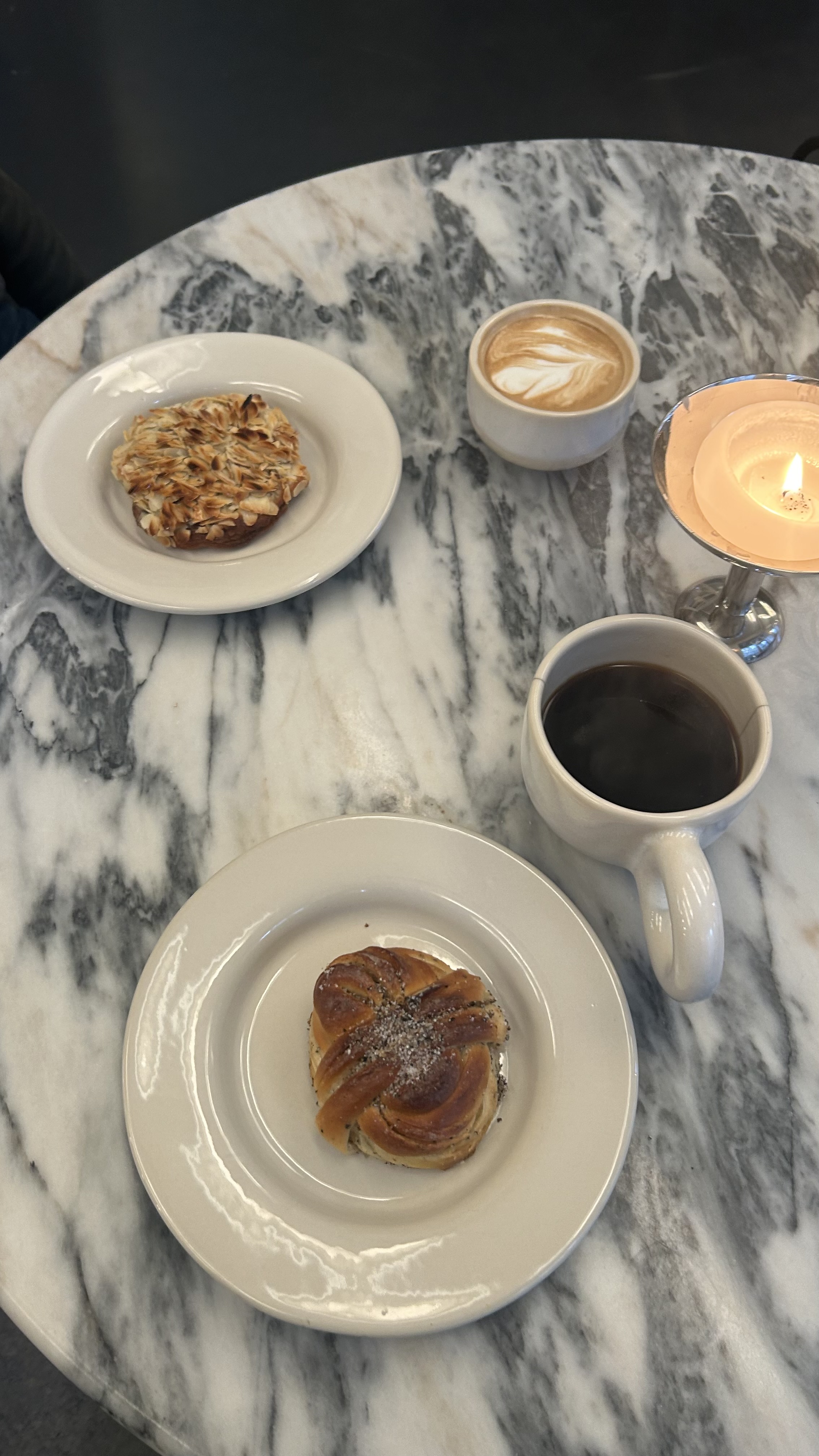 キャンドルが灯された店内で、コーヒーを飲みながら、デンマークでは定番のカルダモンロールを食べ、しばらくのんびりと過ごしました。