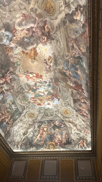 宮殿自体がひとつの芸術作品で、広間のフレスコ画や天井画に圧倒されます。