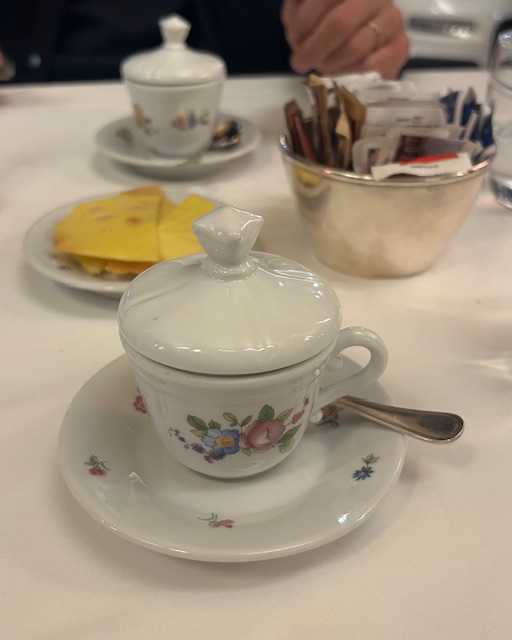 食後のエスプレッソも、他ではあまり見ない、こんな素敵なカップで届きます。