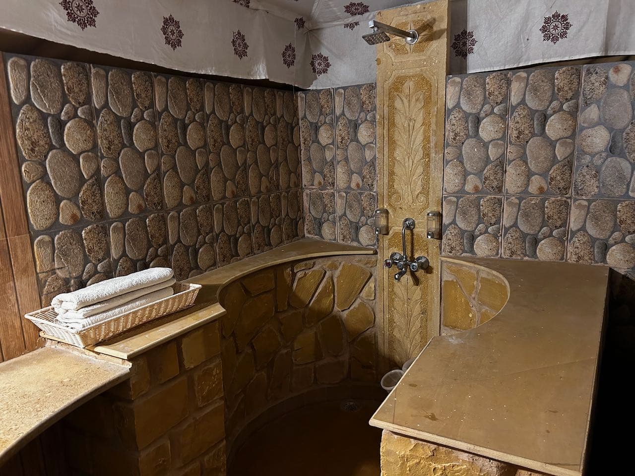 設備は比較的綺麗で居心地はいいですが、温かいシャワーを使える時間が早朝だけだったり、水圧は弱かったり、電気も時間制限されていたり、砂漠なので寒暖差が結構あったりと、この環境だと結構疲れるので、複数泊すると体力的にきついかも。。