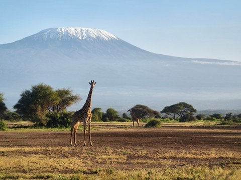 標高5,895mのキリマンジャロを望むアンボセリ国立公園。