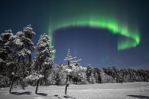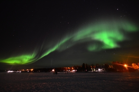 オーロラ遠征は快適なバスで行われます。途中、古代ラップランドの人々にとって至高神ウッコの住まいと信じられていた険しいイナリ湖で写真撮影のために停車します。そこから湖の近くにあるオーロラキャンプへ向かいます。