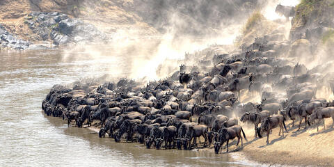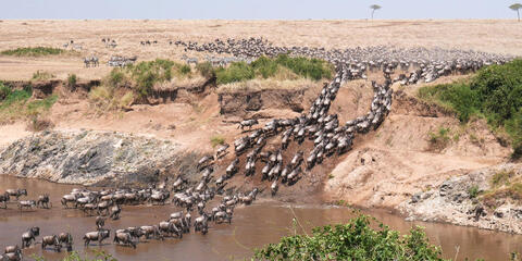ケニアの揺るぎない自然のハイライトの一つはマサイマラ国立保護区であり、同保護区は国の南西部に1500平方キロメートル以上にわたって広がっています。公園はゾウ、ライオン、ヒョウ、バッファローなどの驚くべき動物群を保護しており、マラ川ではワニやカバも見られます。鳥類もまた印象的で、450種以上の常在鳥が確認されています。しかし、ここでの真のハイライトは「大移動」であり、世界の七つの新しい不思議の一つに認定されています。乾季の7月から9月を生き延びるために、およそ170万頭のヌーがタンザニアのセレンゲティ国立公園の乾いた平原から移動します。より少ない数のアンテロープ、バッファロー、シマウマも一緒に、より恵まれたマサイマラの草地へ移動します。その後を追うのはライオン、ハイエナ、チーターなどの捕食者で、これらの巨大な群れは彼らにとって格好の獲物となります。