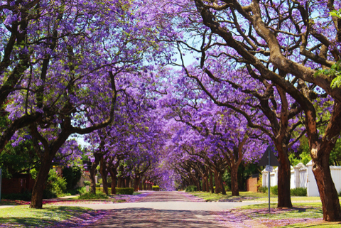 南アフリカの首都で、「ジャカランダの街」とも呼ばれるプレトリアは、5万本以上のジャカランダの木々が街を彩り、9月下旬から11月中旬にかけて紫色の花が咲き誇ります。プレトリアは南アフリカの行政首都であり、大都市圏全体は「ツワネ市」と改名されていますが、市中心部は「プレトリア」の名前を保持しています。