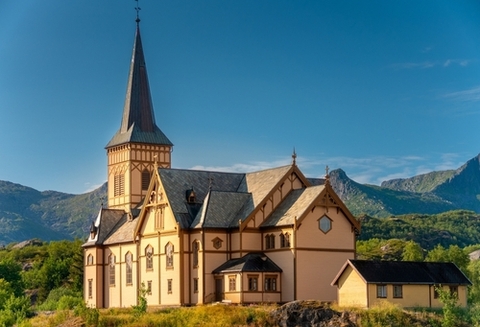 スヴィノヤからは荘厳なロフォーテン大聖堂へ向かいます。北極の風景にそびえる信仰と復興の象徴であるこの建築物の内部には、精緻な木彫やステンドグラスが施され、世紀を超えた宗教的歴史と文化遺産に浸ることができます。