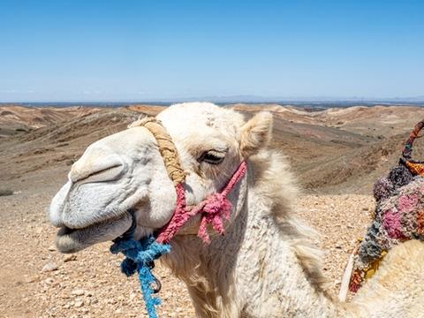 ラクダでのトレッキングを体験。広大な大地のスケールを全身で感じていただけます。