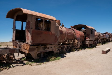 塩の空の下:ウユニでのウェディング撮影セッション 冒険の初日には、単にウユニ塩原を訪れてくつろぐことができます。まず列車の墓地(石炭時代からの非常に古い機関車)を訪れます。魔法のようなウユニ塩原。果てしない輝く塩の大地の真ん中で美しい夕日を見た後、ウユニの町へ戻ります。 [English Guide]