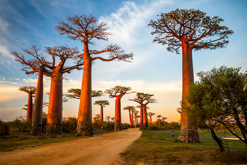 近くにあるバオバブストリートでは、まっすぐに伸びる巨木たちが並び立つ壮観な風景が広がります。