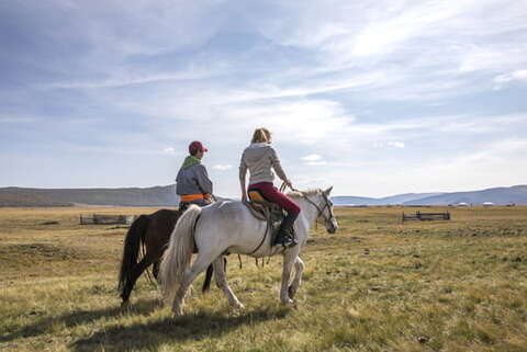 乗馬で巡る草原と亀石・アルヤバル寺院 家族で楽しむ体験