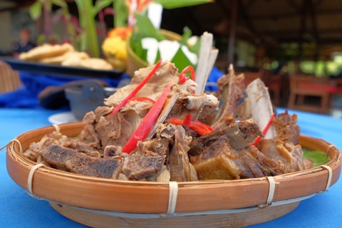 遊牧民のゲルにてモンゴル名物・石焼バーベキュー「ホルホグ」(羊の石焼)をご用意。