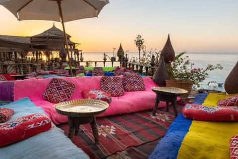 シャルム・エル・シェイクで人気の高い崖沿いのカフェで、独特の装飾とゆったりとした雰囲気が魅力です。海を望むテラス席からは紅海の絶景が広がり、夕暮れ時には特に美しい景色を楽しめます。照明やインテリアがつくり出す幻想的な空間で、ドリンクを味わいながらリラックスできる、観光途中の立ち寄りスポットとしても人気のカフェです。
