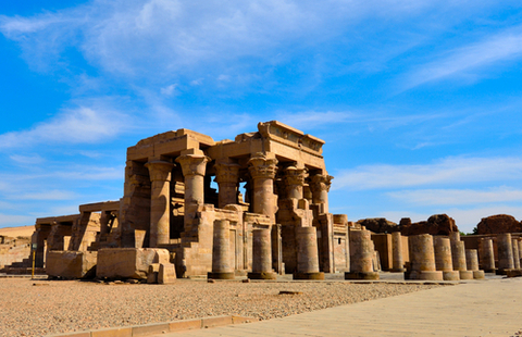 • コムオンボ神殿 ナイル川のほとりに佇む、珍しい二重構造の神殿。ワニの神ソベクと鷹の神ホルスの二神を祀り、左右対称に設計された独特の建築様式が特徴です。壁面には古代の医療器具や儀式の場面が精緻に刻まれ、当時の信仰と生活の豊かさを伝えています。夕暮れ時、ナイルの水面に映える神殿のシルエットは幻想的で、古代と自然が調和するエジプト南部を象徴する景観です。 [English Guide]