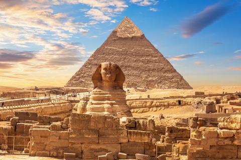 • ギザのピラミッドとスフィンクス ギザのピラミッドとスフィンクスの見学では、古代エジプトを象徴する壮大な建造物を間近に見ることができます。クフ王、カフラー王、メンカウラー王の三大ピラミッドが並び立ち、隣接するスフィンクスは人間の顔とライオンの身体を持つ守護像として知られています。世界遺産にも登録されており、エジプト文明の偉大さを実感できる必見の観光地です。 [English Guide]