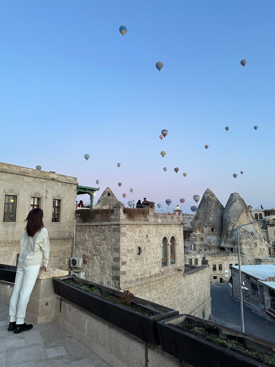 ミスラケーブ;ホテルの方は皆さん丁寧で優しかったです。私達の部屋の目の前に(喫煙場所ではありましたが)テラス的な空間があり、気球予備日はそこを貸し切り状態で空に上がる気球群を見ることが出来ました。